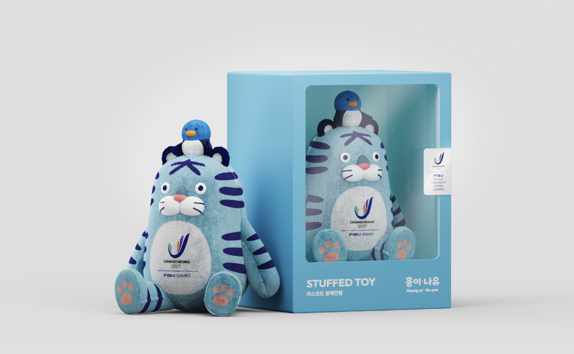 Chungcheong 2027 World University Games is an event to be held across four cities and provinces in Korea's Chungcheong region. It is the largest international event after the Olympics, featuring competition in 18 sports, with approximately 15,000 athletes from over 150 countries. The mascots, Heung-yi and Na-you, are the symbols of the event and the primary elements that promote the identity of the Chungcheong region to the world. We designed them for effective use across various media platforms and in all aspects of event operations.