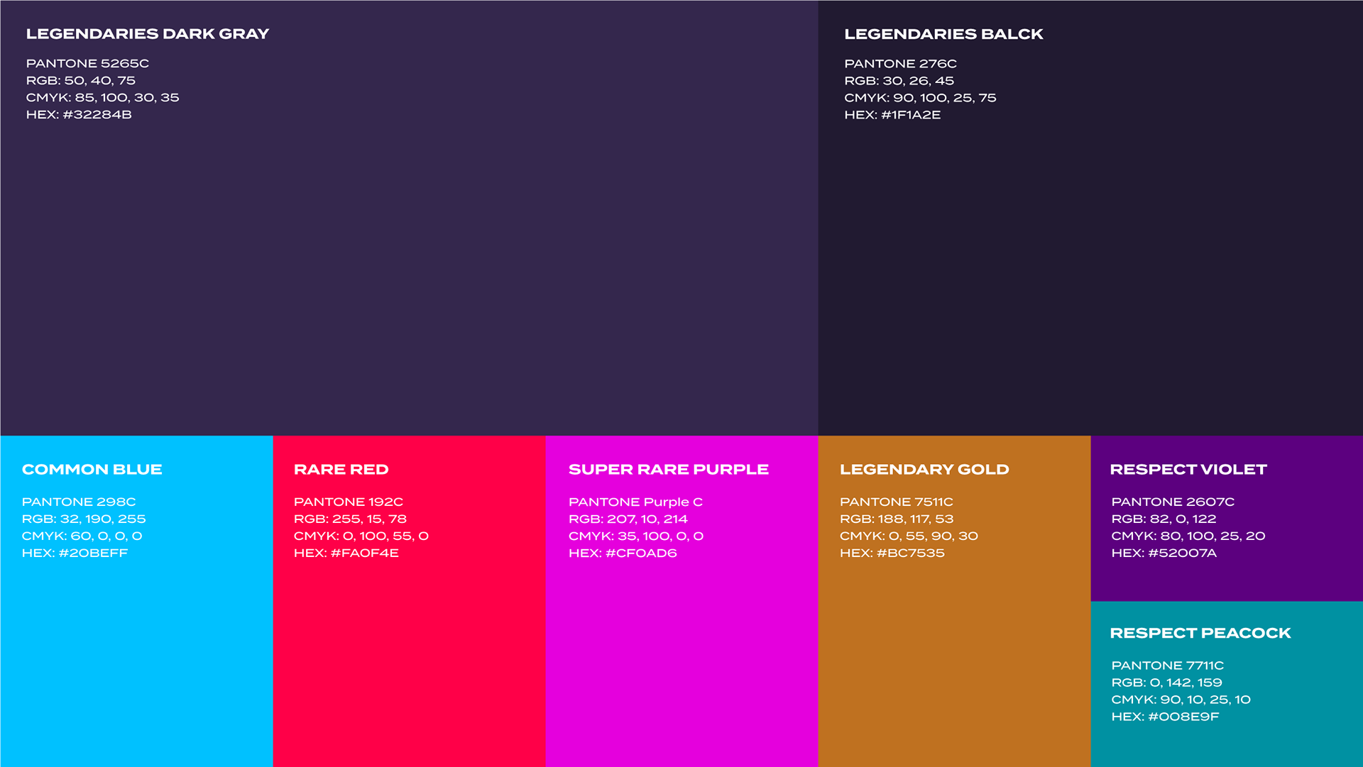 LCK 레전더리스의 컬러는 'League of Legends'의 Skin Rarity에서 차용하여 브랜드 이미지에 맞는 컬러로 지정하였습니다.