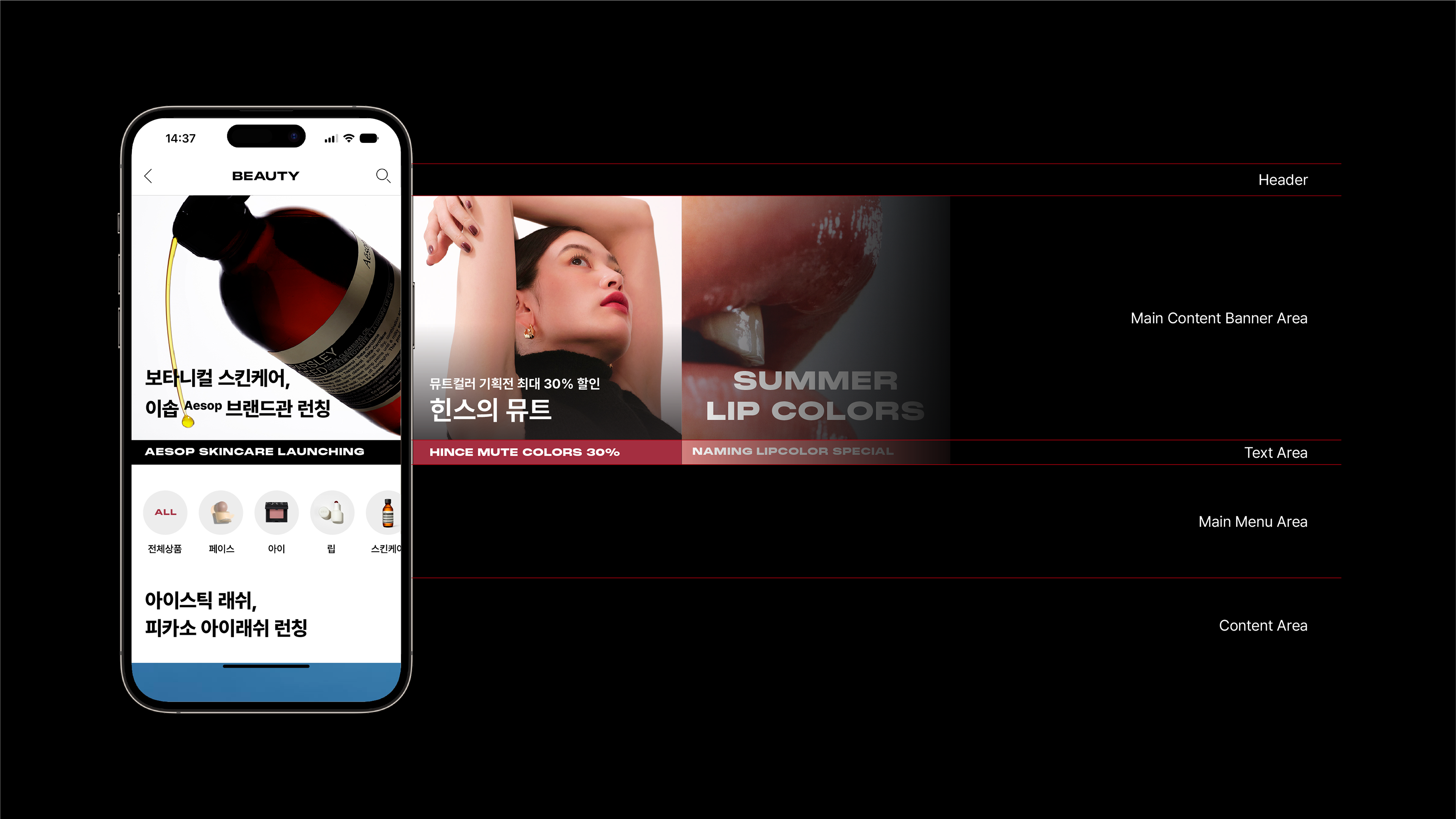 MUSINSA BEAUTY is a cosmetics platform categorized as MUSINSA, a fashion platform. Inspired by the identity and uniqueness of all generations, MUSINSA BEAUTY aims to communicate with people in various fields and respect their expressions. This represents a borderless pursuit of beauty beyond genderless, and we designed brand identity to show the "power through solidarity" of fashion, art, and beauty.
